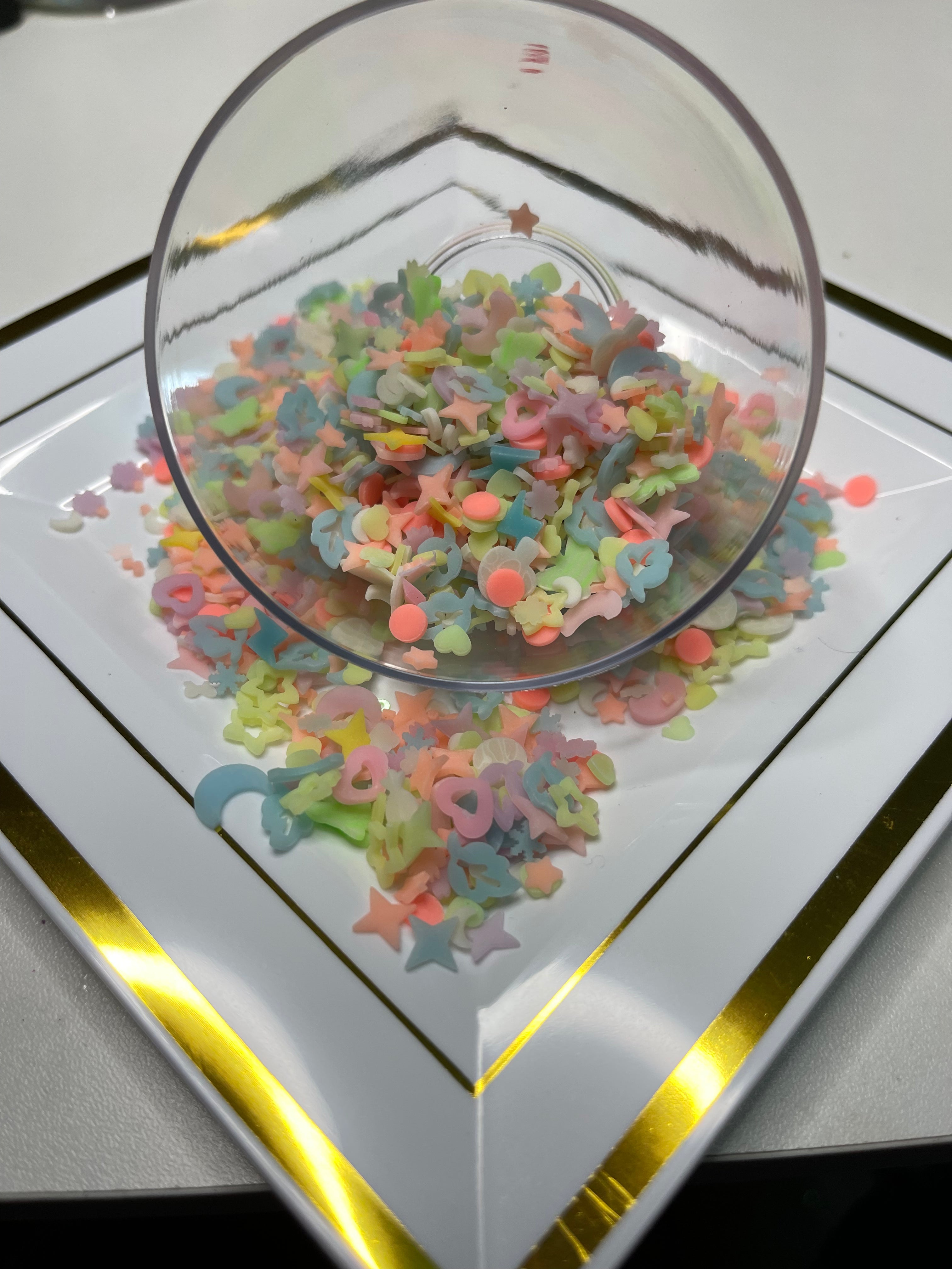 Pearls and rhinestones (which are heavier than sprinkles) may create the appearance of a slightly less amount of mix in the same size bag. Each order is accurately weighed!