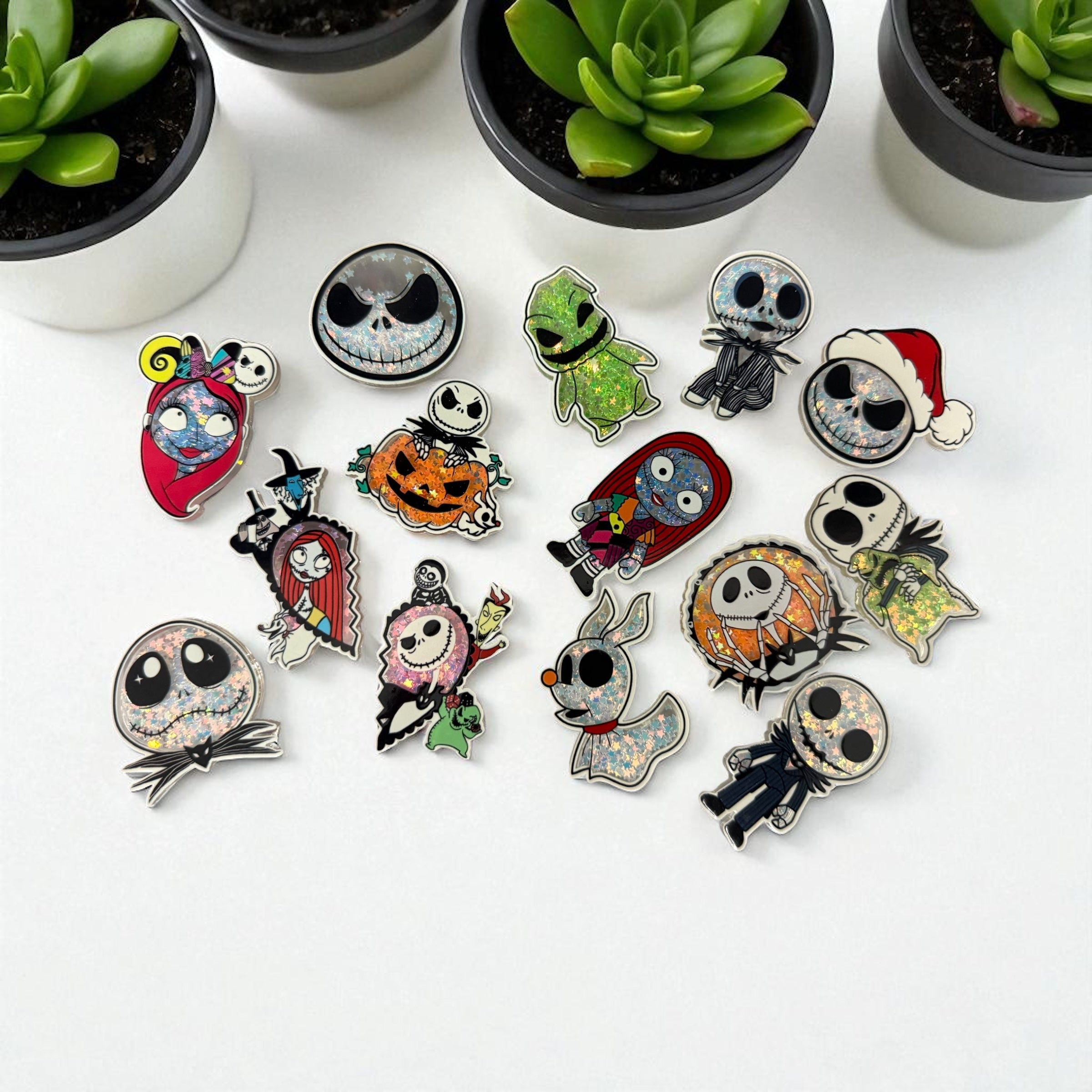 These Nightmare Before Christmas flatback shakers are perfect for adding a spooky touch to bows, crafts, and DIY projects. Made with high-quality materials, they are durable and versatile, making them great for a variety of uses. Add a touch of Halloween to your creations with these unique flatback shakers.